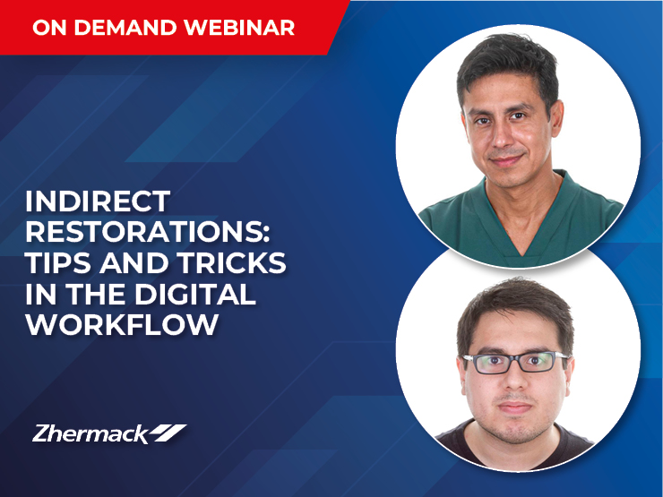 The title of this webinar is "Indirect restorations: tips and tricks in the digital workflow" and the speakers are Dr. Victor Clavijo and Mr. Willy Clavijo (CDT). Digital workflow has...
